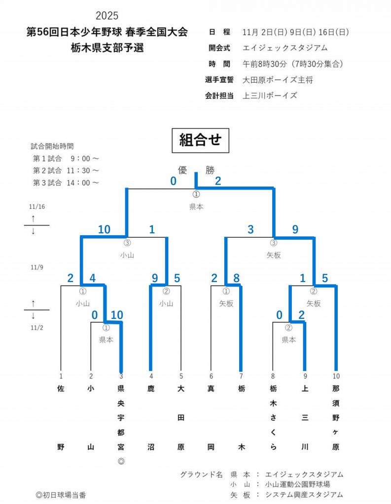 11/16に第56回日本少年野球春季全国大会栃木県支部予選、準決勝と決勝戦が行われました。