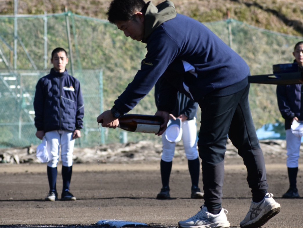 お清め:一年間の感謝を込めて、グラウンドをお清めしました。